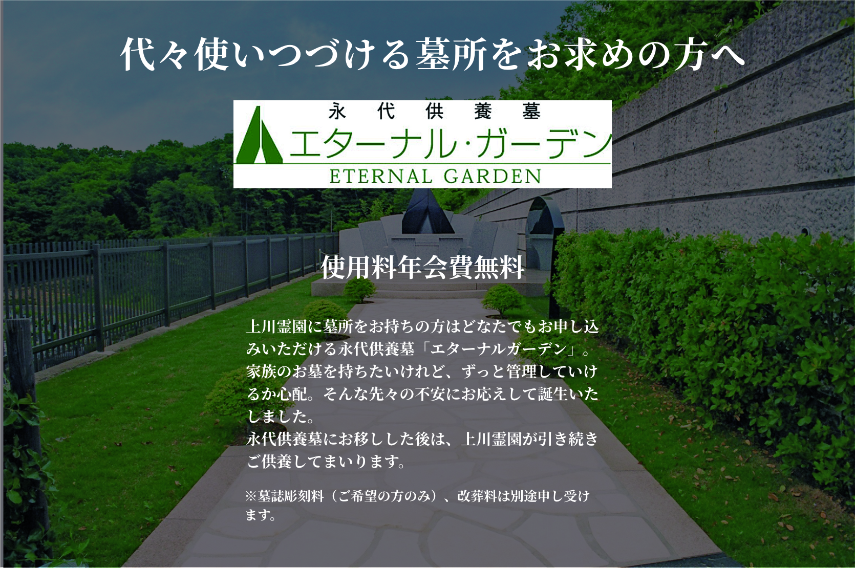 上川霊園ならいざという時は永代供養墓への改葬をお申込み可能です。