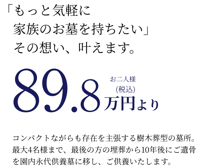 将来は永代供養墓へ。お一人様、お二人様のためのお墓です。
