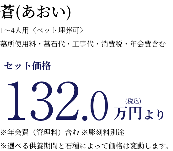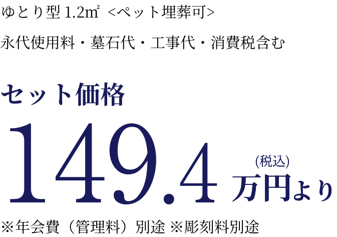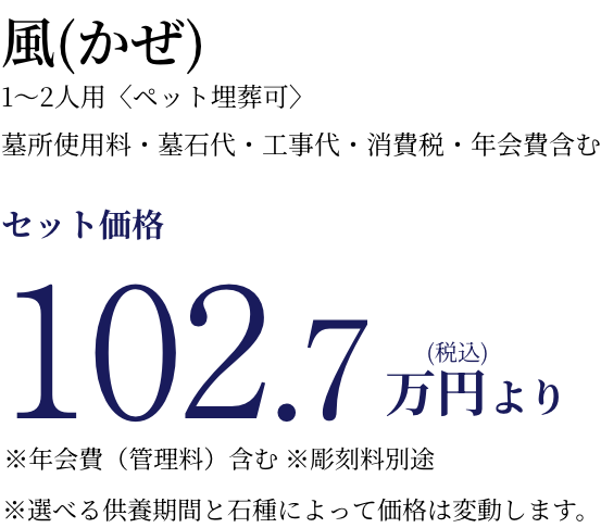 ※33年間墓所使用料+標準彫刻料+エターナルガーデンへの改葬料含む。