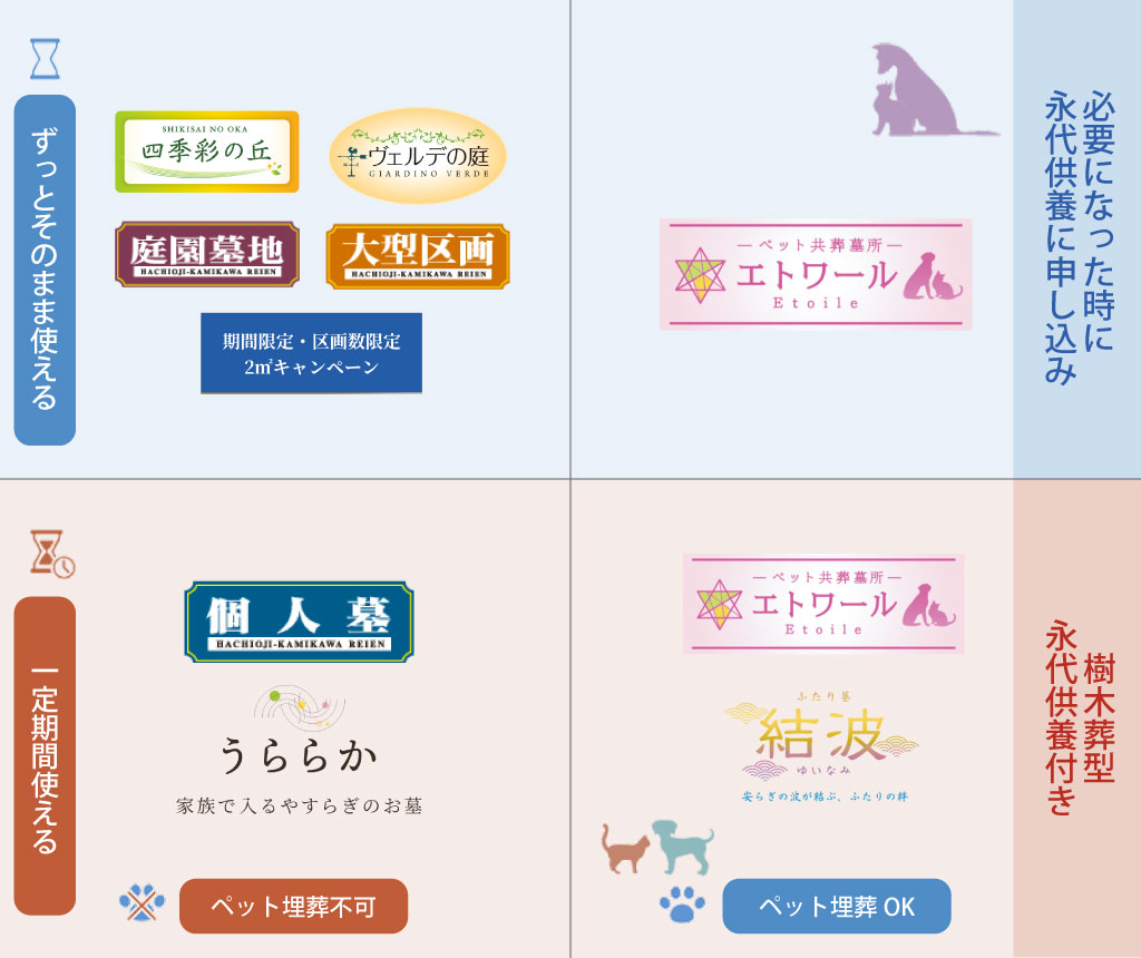 それぞれ特色が異なる園内墓所バリエーション